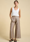 Introducing the Little Lies Bondi Pants in a grounded and elevated chocolate hue, crafted from a beautifully textured slub-like linen, that adds depth and a fresh dimension to this new collection.