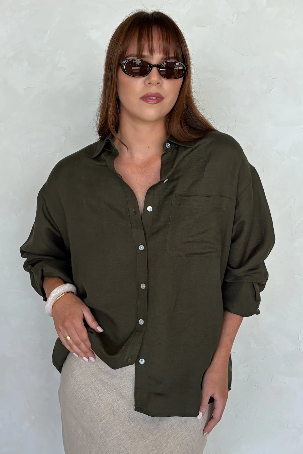 Exalted Linen Viscose Oversized Shirt - Khaki